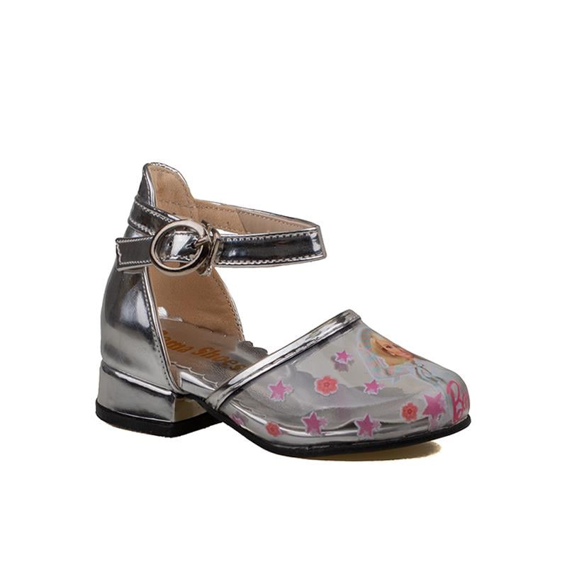 Minik moda ikonları için tasarlanan bu topuklu şeffaf ayakkabılar, zarif ve modern bir stil sunuyor. Yan taraflarında bulunan parlak gümüş detaylar ile her adımda dikkat çeker.